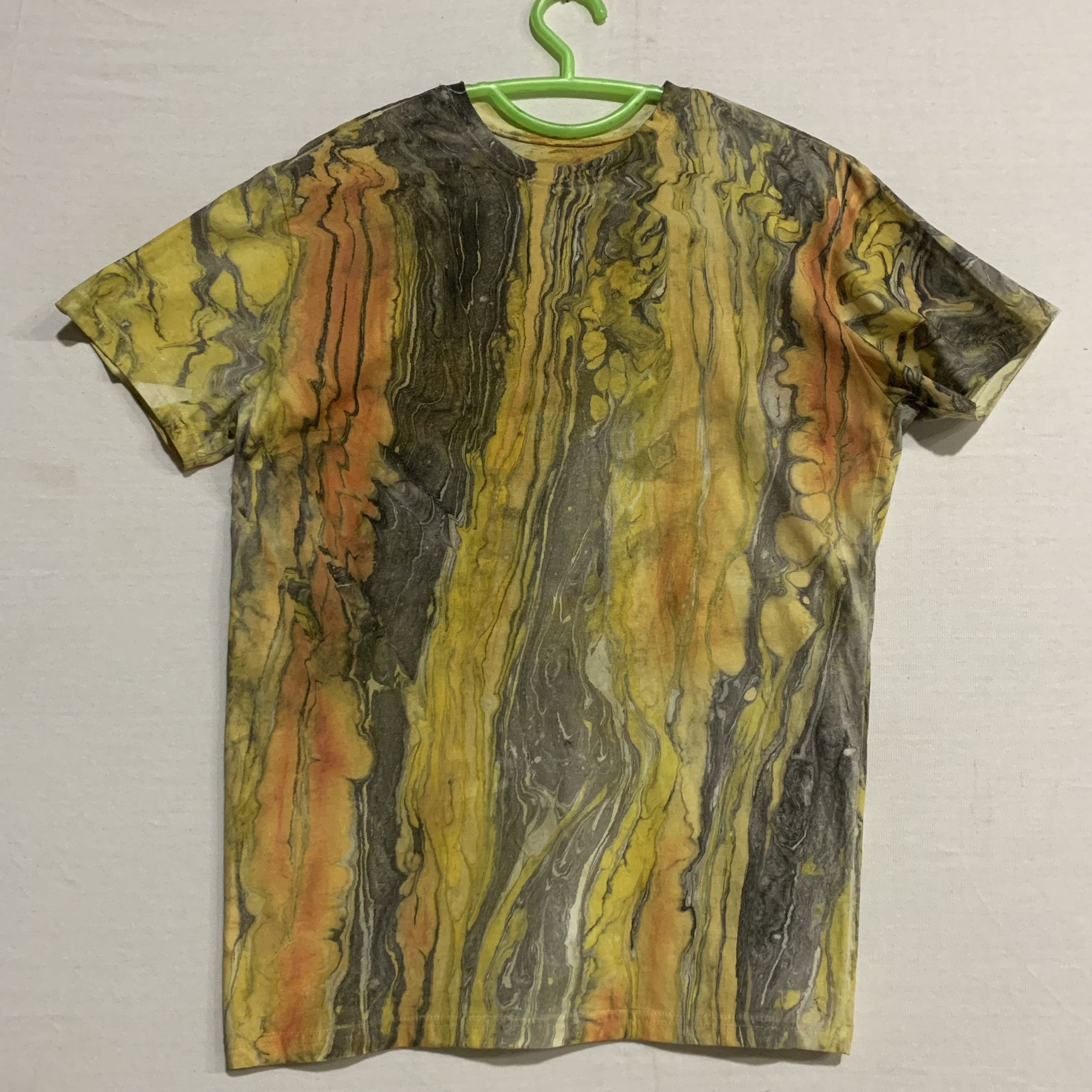 . Marble in the EBRU Turkish tradition on 140 GSM 100% cotton jersey Tshirt