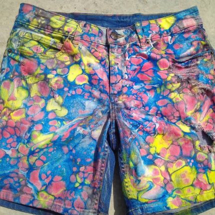 . Marble in the EBRU Turkish tradition on 12 oz 100% cotton jeans shorts