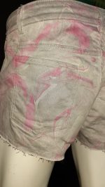 This is one of a kind hand marble Denim shorts follow the 16 century Turkish EBRU tradition of marbling by floating acrylic atop a viscose Irish moss seaweed liquid, creating an organic pattern as the ink spreads across the liquid surface then captured by carefully placing the fabric atop the thick liquid Vat! You might spot evidence of how this denim shorts was hand printed by a thin white live along the side from flipping the denim shorts Vat or a white drip near the fly where the liquid seaweed often pools up when rotating the method